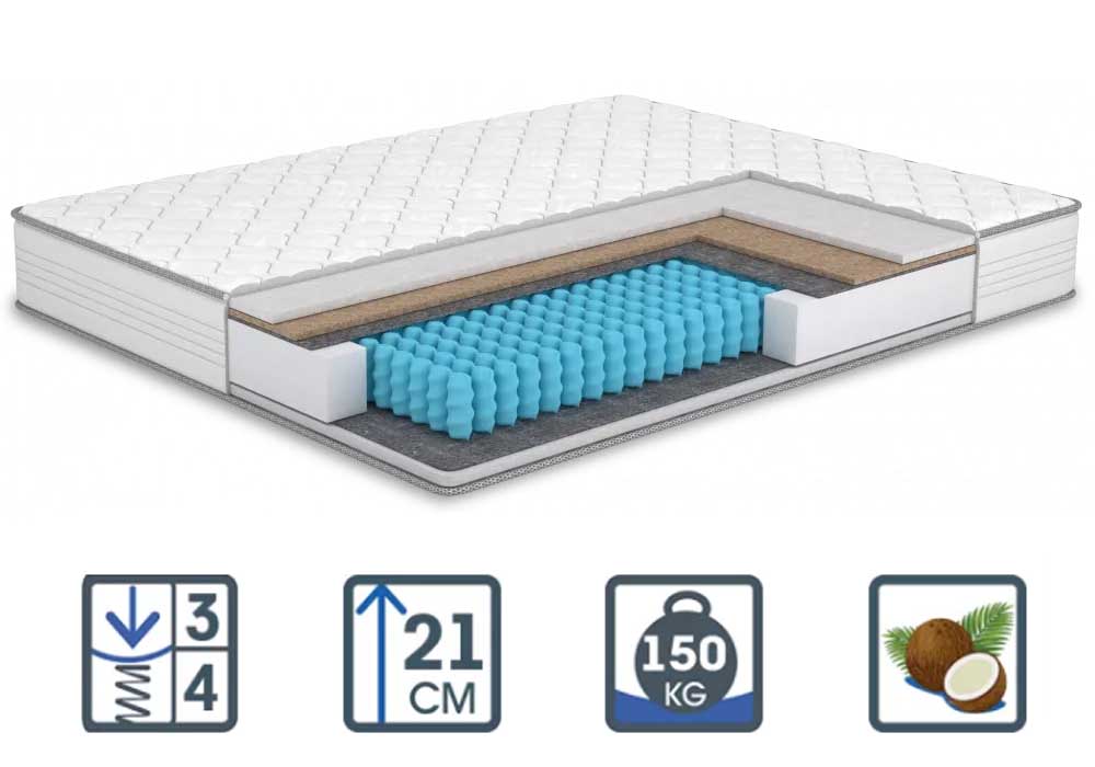 - Cocos Coir. Компонент из кокосового волокна и латекса корректирует жесткость, надежен, безопасен с санитарной точки зрения. Он не гниет, долго сохраняет структуру и плотность.