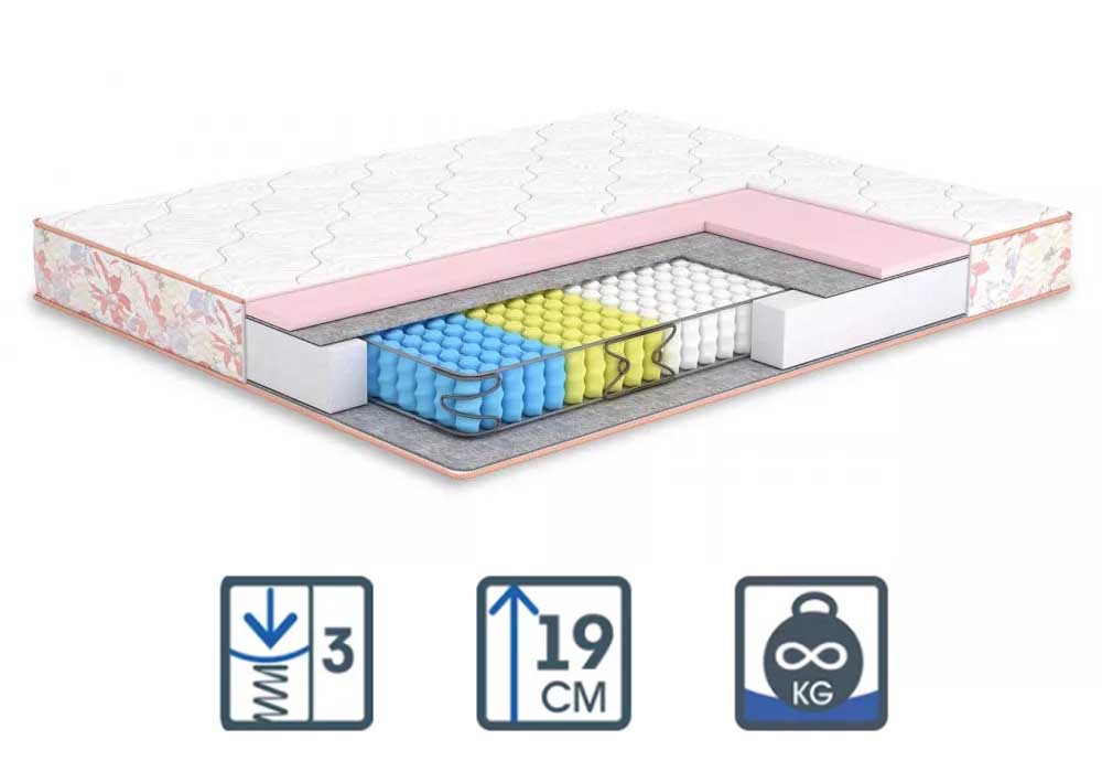 Слой 3Пружинный блок Pocket Spring с разделением на 5 зон, усиленный двумя рамками из стали