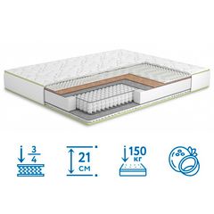 Гарантия на изделие 2 года Жесткость сторон матраса 3/4 Торговая марка матраса Matroluxe Жесткость Средний Высота матраса 21 см Нагрузка на спальное место до 150 кг Тип матраса Двусторонний Тип пружинного блока Независимый блок...