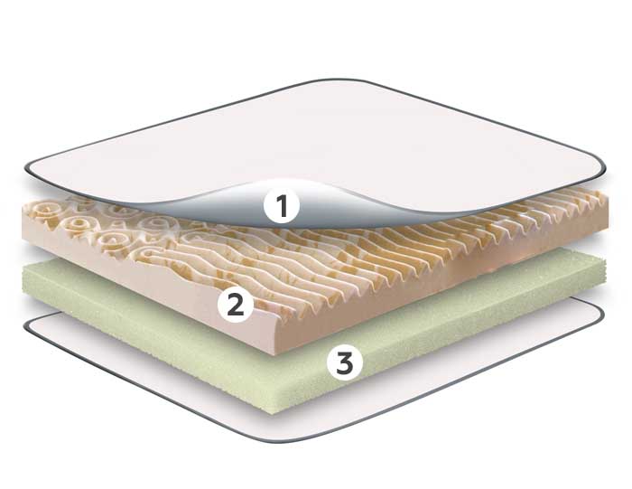 Дополнительная прослойка из упругой пены придает поверхности необходимую мягкость. Наполнитель состоит из ячеек разного размера. Такая структура хорошо пропускает воздух, быстро принимает изначальную форму. Использование такого слоя улучшает ортопедические характеристики приспособления.
