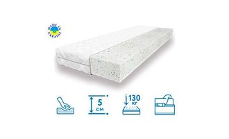 Двухсторонний топпер высотой 5 см способен выдержать нагрузку до 200 кг на одно спальное место. Он выровняет поверхность любого трансформируемого дивана, поможет скорректировать жесткость поверхности. Достаточно перевернуть изделие для получения средней или умеренно жесткой поверхности для здорового сна.
