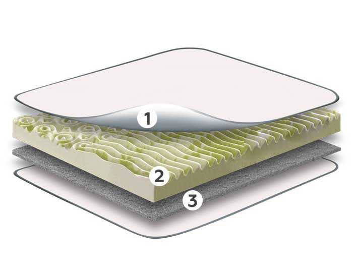 В основе топпера применяется уникальная пена Foam 7-zone effect. Вспененный по особой технологии полиуретан обладает ячеистой структурой. Это придает ему необходимую прочность и упругость. Материал отлично пропускает воздух, что исключает появление и развитие вредных насекомых и бактерий. Фигурная резка создает деление поверхности на функциональные зоны для повышения ортопедических свойств изделия.
