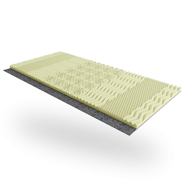 В основе топпера применяется уникальная пена Foam 7-zone effect. Вспененный по особой технологии полиуретан обладает ячеистой структурой. Это придает ему необходимую прочность и упругость. Материал отлично пропускает воздух, что исключает появление и развитие вредных насекомых и бактерий. Фигурная резка создает деление поверхности на функциональные зоны для повышения ортопедических свойств изделия.