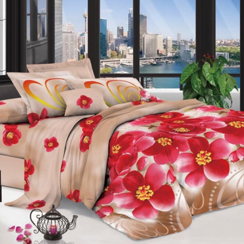 Для пошиття застосовується міцний поплін, що володіє відмінними споживчими властивостями. Полотно приємно навпомацки, не перешкоджає природній циркуляції повітря. Воно не накопичує статичну електрику, не мнеться, стійко переносить багаторазові цикли автоматичного прання. Зображення та візерунки не втратять яскравості , будуть довго радувати око і прикрашати інтер'єр житлового приміщення. Застосування передових виробничих технологій і натуральних барвників робить білизну Мірабелла абсолютно безпечною для організму людини. В асортименті представлені всі стандартні розміри. Це істотно спрощує процес вибору. Комплект, який до вподоби, можна придбати для односпального або двоспального ліжка. Є євро і сімейні набори. Істотною перевагою комплектів Мірабелла є висока якість пошиття. Рівні шви гарантують комфортне і довговічне використання постільних речей.