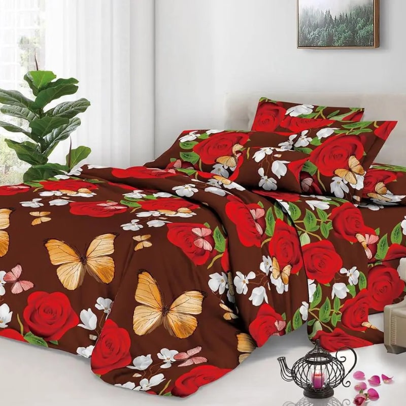 Для пошиття застосовується міцний поплін, що володіє відмінними споживчими властивостями. Полотно приємно навпомацки, не перешкоджає природній циркуляції повітря. Воно не накопичує статичну електрику, не мнеться, стійко переносить багаторазові цикли автоматичного прання. Зображення та візерунки не втратять яскравості , будуть довго радувати око і прикрашати інтер'єр житлового приміщення. Застосування передових виробничих технологій і натуральних барвників робить білизну Мірабелла абсолютно безпечною для організму людини. В асортименті представлені всі стандартні розміри. Це істотно спрощує процес вибору. Комплект, який до вподоби, можна придбати для односпального або двоспального ліжка. Є євро і сімейні набори. Істотною перевагою комплектів Мірабелла є висока якість пошиття. Рівні шви гарантують комфортне і довговічне використання постільних речей.
