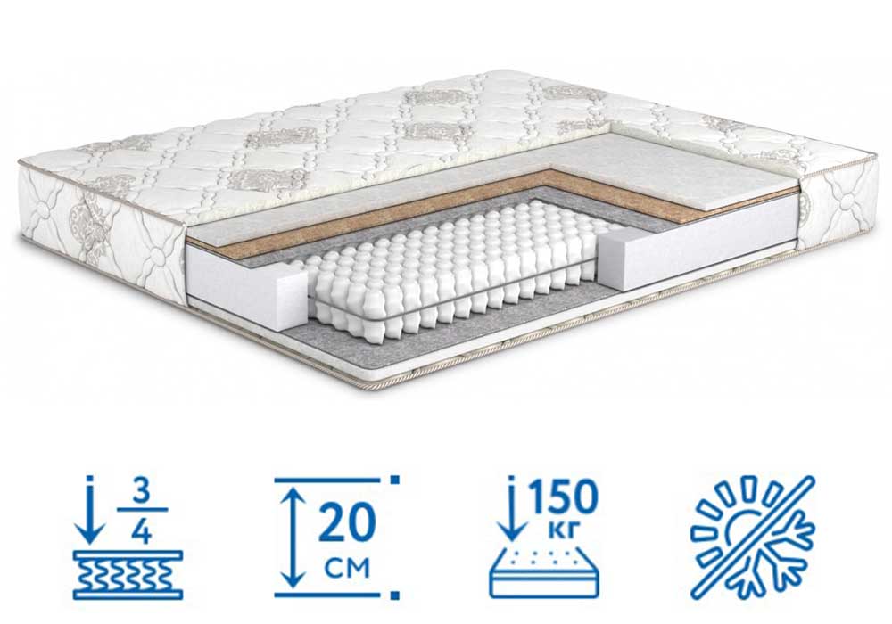 Міцний матрац Капучіно Софт Плюс купити в інтернет-магазині Матрац ТБ можна не виходячи з дому. В основі конструкції використаний перевірений часом блок незв'язаних металевих пружин. Модель висотою 20 см має комбіноване наповнення, здатна витримати вагу людини до 150 кг. Дві рівнозначних функціональних боки гарантують здоровий сон, незалежно від пори року.