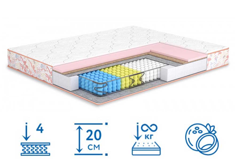Односторонній матрац Rose купити в інтернет-магазині Матрац ТБ можна, не покидаючи свій будинок. Виріб 20 см заввишки володіє універсальною середнім ступенем жорсткості, зможе витримати будь-яку вагу людини. Основу конструкції становить система незв'язаних пружин Pocket Spring, доповнена рамою по зовнішньому периметру. Пристосування забезпечує комфортні умови для повноцінного нічного сну.