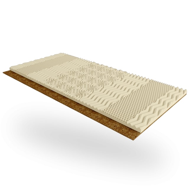 Настил з кокосової койри підвищує жорсткість поверхні, продовжує термін експлуатації приналежності. Рослинне волокно не здатне викликати алергічну реакцію. Воно не розсихається, не боїться надмірного механічного навантаження, не гниє.